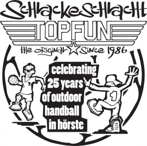 um 25-jährigen Jubiläum der Schlackeschlacht hat die TG Hörste ein eigenes Logo entworfen, das auf den traditionellen Turnier-Shirts erhältlich ist.
