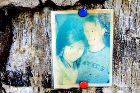 Drei Sterbekreuze: An dieser Stelle starben im Oktober 2008 Viktor (20), Gwan (19) und Marius (17). Die Gedenkstätte am Wegesrand des Westringes in Gütersloh wird von den Eltern nach Zerstörungen immer wieder hergerichtet.